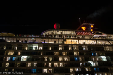 Etwas befremdlich waren eigentlich nur eine Passagiere. Das Verhalten und die Geräusche erinnerten mich irgendwie mehr an Fußballstadion und nicht an ein ablegendes Kreuzfahrtschiff.