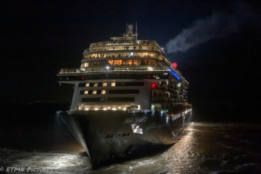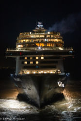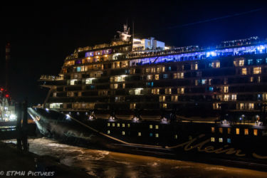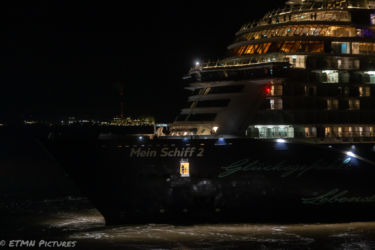 Mit der MEIN SCHIFF 2 war nach der AIDAnova schon der zweite Neubau innerhalb kurzer Zeit in Bremerhaven zu Gast. Aus Hamburg kommend legte das Schiff wieder in Bremerhaven ab, mit Reisefachleuten an Bord. Diese sollten einen Eindruck von dem neuen Schiff gewinnen. Nach dem erneuten Anlaufen von Bremerhaven sollte es dann am 29.01.2019 zum ersten mal mit zahlenden Gästen zu einer „Vorfreudefahrt“ von Bremerhaven losgehen. Sollte habe ich geschrieben, da ich mich inzwischen schon daran gewöhnt habe, das in der Seefahrt Zeiten ehr „Anhaltspunkte“ als genaue Zeitpunkte sind. War es bei der AIDAnova noch die Rettungsübung, die das rechtzeitige Auslaufen verhinderte, war es diesmal ein Containerschiff das erst an der Stromkaje festmachen musste. Allerdings war die Verspätung mit knapp 20 Minuten überschaubar.